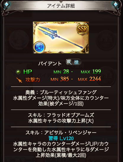 グラブル ブレイブグラウンド開催 水槍 バイデント の第2スキルは水キャラのカウンターダメup カウンター発動の水キャラの与ダメ累積up 2回まで 奥義効果もカウンター付与とカウンターづくしな性能に いすたるしあ通信 グラブルあんてな グランブルー
